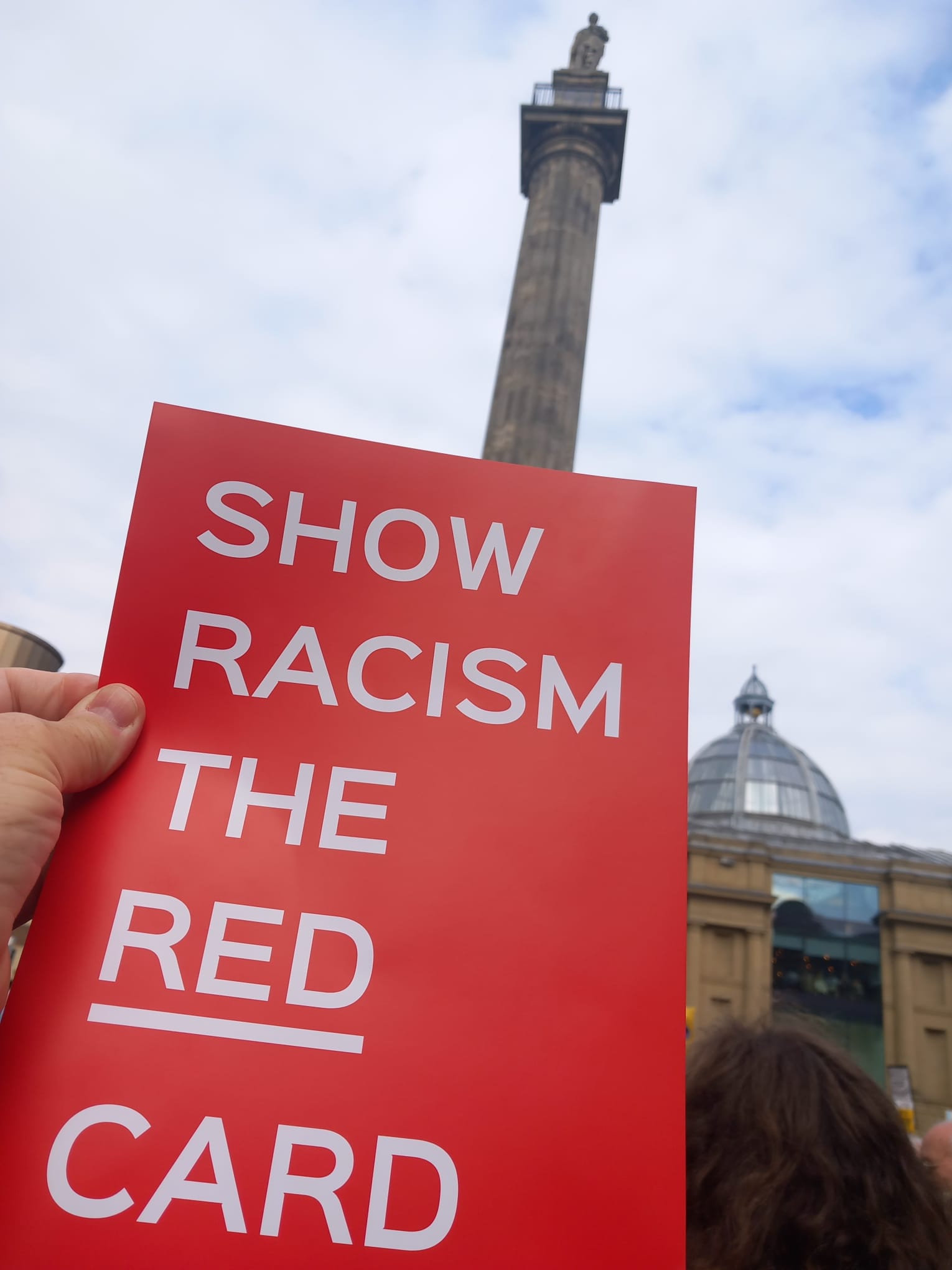 Saturday 27th September 2025 and good to meet up with many KONPNE supporters at the Anti Racism Rally / counter protest in Newcastle this afternoon. Apparently, Tommy Robinson, prominent far right wing racist was in town for a conference / protest march – but they very soon found that they, the far right, were not welcome in the North East. In short, the far right were massively, totally outnumbered. The counter-protest from the people of the North East was IMMENSE. We made it clear that there is no place for racists on the streets of Newcastle.