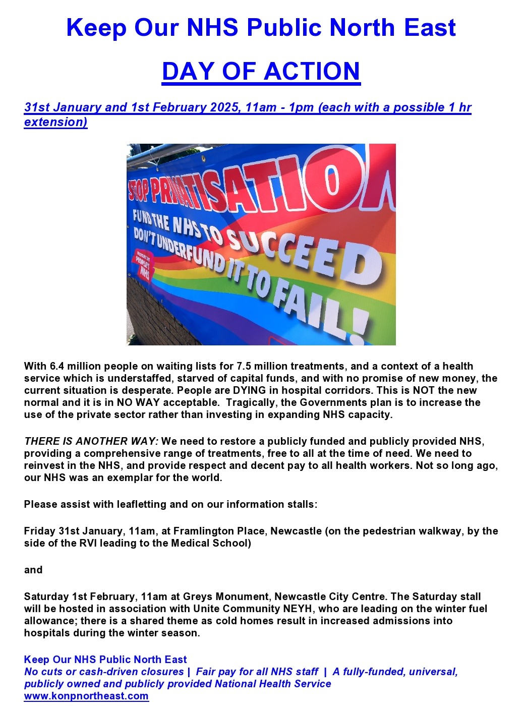 Lively discussions and positive campaign plans at tonights meeting in Newcastle – feedback on the recent Day of Action, and plans made for the formal question to Newcastle City Council, campaigning and research in Blyth, and possible NHS march and rally in April….watch this space….or, even better, join us at our next meeting on Thursday 19th March…details are here!!