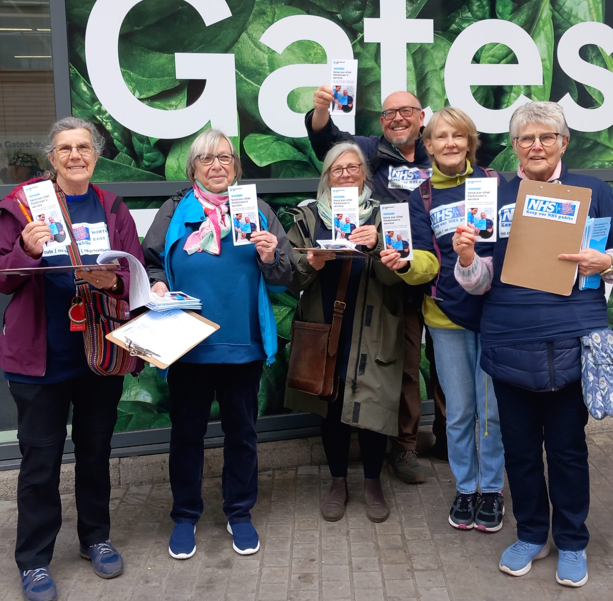 Today, KONPNE campaigners were in Gateshead, spending time with the many people using Trinity Square in the town centre. Huge support for Parkinson’s UK – and shock and anger at the actions of Gateshead Health NHS Trust. Many commented on the very recent closure of Ward 23 (a ward which provided a service to people experiencing both dementia and physical health problems), closed by the same Trust management – cutting the Parkinson’s service is yet another disgraceful decision by Gateshead Health NHS Trust managers.