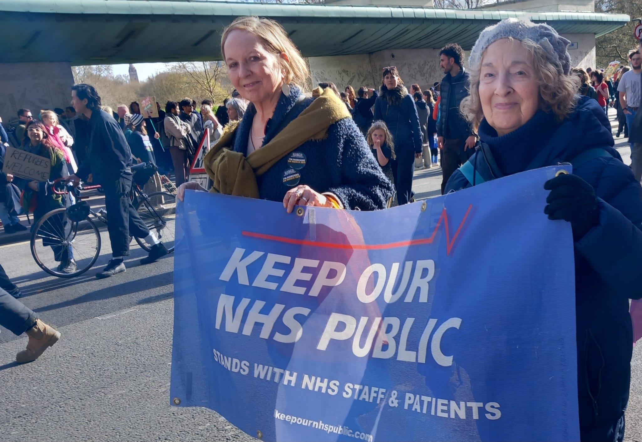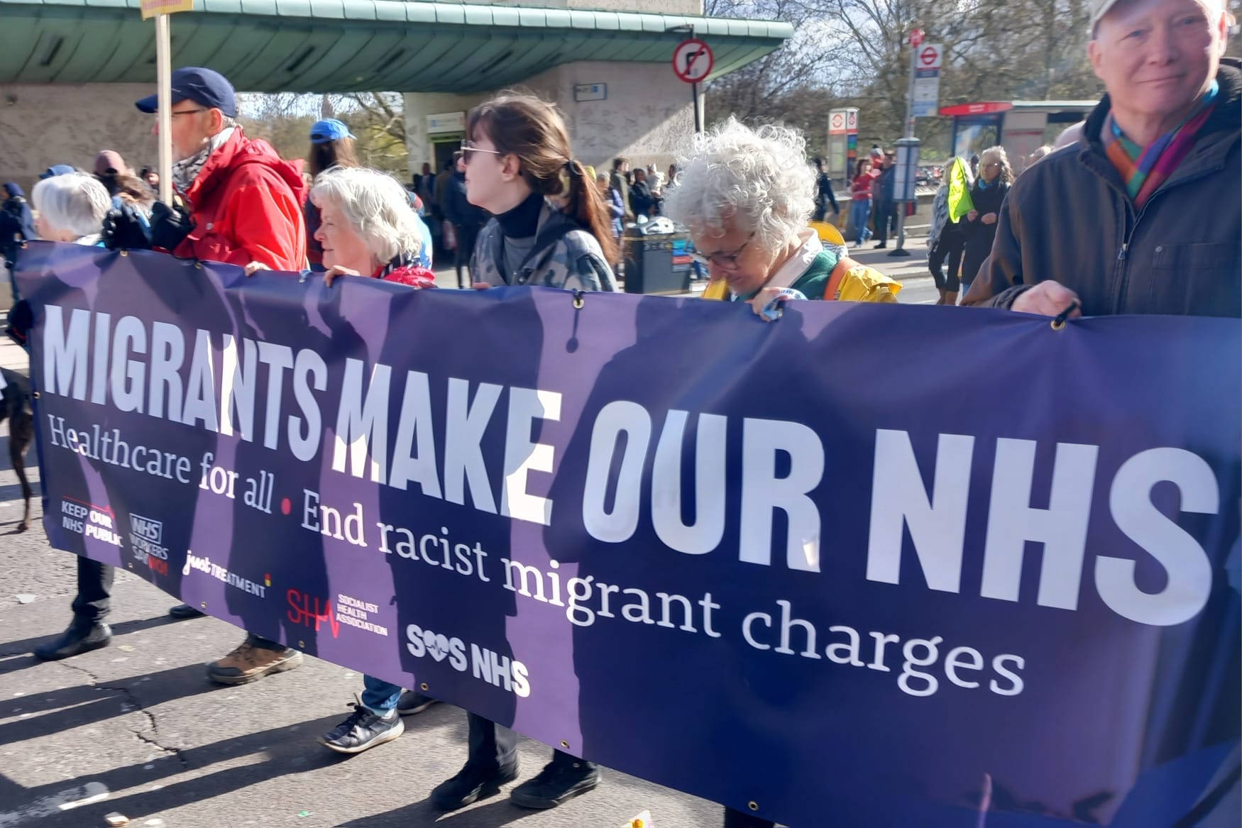 Proud to stand together with an estimated 500,000 people in London. We stand for a society based on truth, fairness, unity and respect – not the politics of hate. The Alliance is made up of hundreds of organisations and groups, representing all parts of society, the NHS and health being just one. Great to join with other KONP groups from across the country giving a very clear, healthcare-related message: Migrants make our NHS – Healthcare for All – End racist migrant charges.