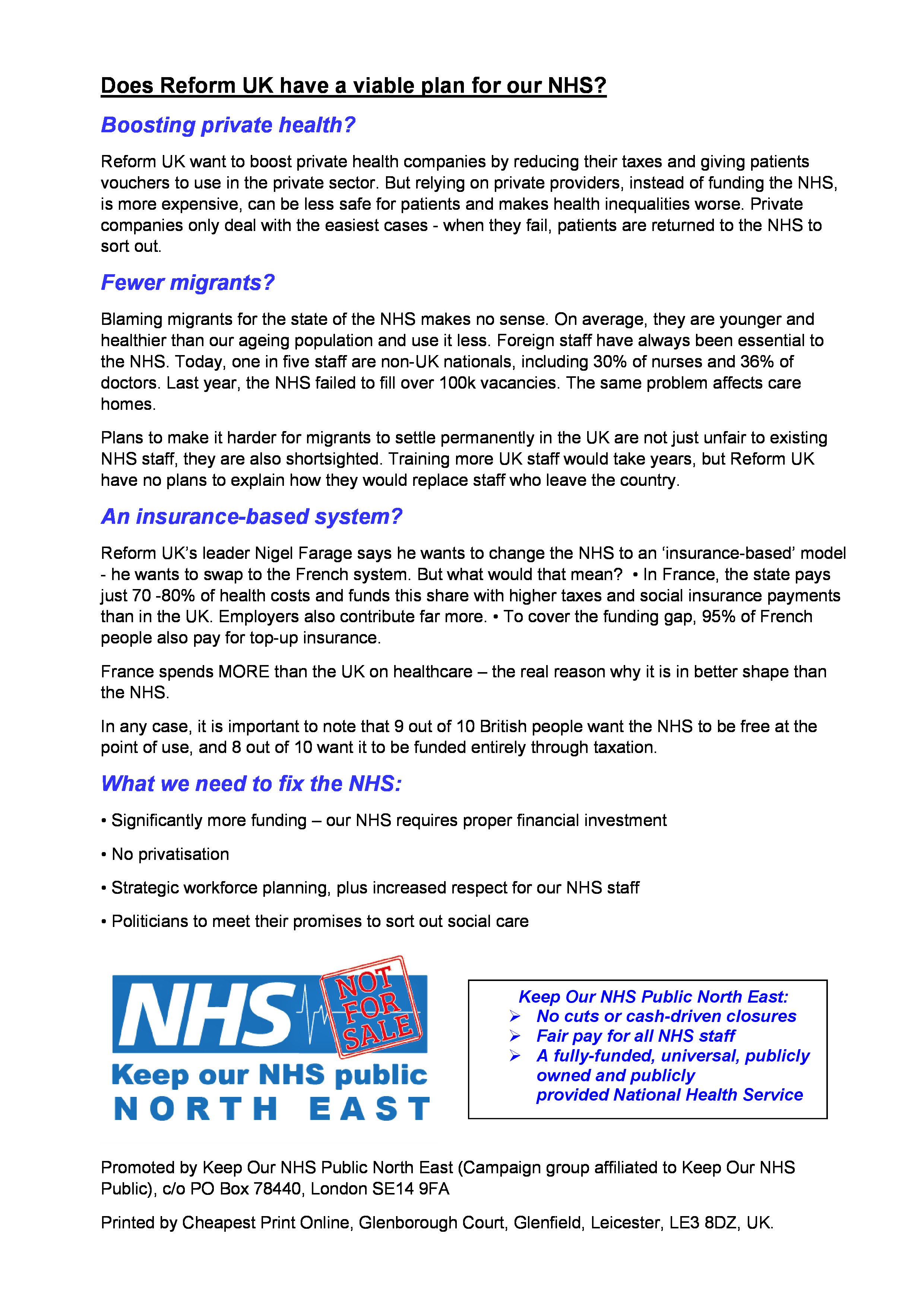 Alongside many other community groups and organisations, KONPNE remain extremely concerned about the proposals of Reform UK regarding the future of our NHS. Based on a leaflet from North London campaign groups, KONPNE have developed this information leaflet for use in the NE – please circulate widely.